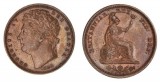 GEORGE III, halfpenny 1770 (S.3774); William IV, farthing 1835, raised line, die axis normal or en medaille (S.3848). Fine; nearly extremely fine. (2)