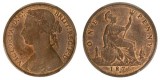 QUEEN VICTORIA, young head, copper farthing, 1839 (S.3950). Uneven tone on obverse, attractive blue red tone overall, nearly uncirculated/uncirculated.