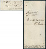 DUKE OF WELLINGTON SIGNATURE, on section of envelope addressed to Messrs Coutts, stamped 'FREE/27JA27/1831', with his signature below and with contemporary letter detailing his titles ...