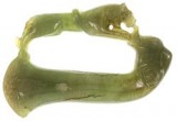FIGHTING LION AND ELEPHANT, dagger or sword handle in jade (8x13cm). Some surface cracks and lion's tail missing, otherwise very fine.
