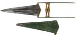 PERSIAN PESH KABZ DAGGER, c1750, steel blade (25cm), with wide spine, some gold niello decoration at the guard area and extending up the tang which ...