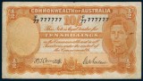TEN SHILLINGS, Riddle/Sheehan (1934) C/64 992856 (R.10). Pin holes otherwise very good.