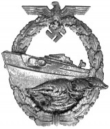 E-BOAT WAR BADGE 1943 - SECOND PATTERN, with top hook and horizontal tapered pin. Maker's name in relief on reverse 'FEC. W.E. PEEKHAUS BERLIN ...