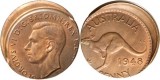 GEORGE VI, penny, 1948, struck twenty percent off centre. Red and brown uncirculated and scarce thus.