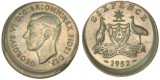 GEORGE VI, sixpence, 1952, struck ten per cent off centre. Uncirculated and very rare for this date.