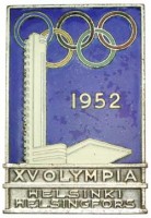 HELSINKI OLYMPICS, 1952, Official's badge in silvered bronze and dark blue enamel background (32mm x 48mm) issued to Chefs de Mission, Judges, Olympic Attaches and ...