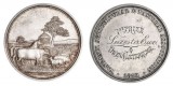 WANGANUI AGRICULTURAL & PASTORAL ASSOCIATION, 1870, struck in silver (38mm), by J.Moore (London), reverse inscribed '1st Prize/Leicester Ewe/Owen & Lethbridge'; impressed stock medal, struck in ...