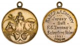 (TAURANGA AGRICULTURAL & PASTORAL ASSOCIATION), fob medal, in silver with gold (38x25mm), English maker and hallmark, reverse inscribed 'E.M.L./Tauranga/1914'; another, fob medal, handcrafted in silver ...