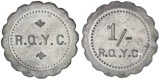ROYAL QUEENSLAND YACHT CLUB, collection of value stated checks, 9d, 1/-, 2/-, 4/-, 5/-, 10/-, 20/-, all round, plus 1/- scalloped, 2/- with four scallops, ...