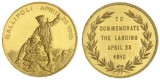 TO COMMEMORATE THE GALLIPOLI LANDING, 1915, in gold (22ct; 12.70g; 25mm) (C.1915/7, type with Prouds Ltd). Edge test marks and hairlines, otherwise nearly uncirculated and ...