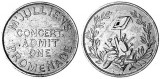 PROVINCIAL MUSIC AND CONCERT HALLS, refreshment tickets; Festival Choral Society Birmingham, in centre a lyre, reverse stamped 239 within wreath in brass (30mm) (M.G.469) (illustrated); ...