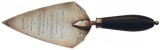 PRESENTATION TROWEL, in silver with black handle, (length 345mm), engraved on face of blade 'Presented / together with a / Purse of Gold / to ...