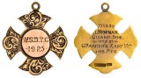 WAIAPU CHAMPIONSHIP, hand engraved in gold (9ct, 15.38g, 34.5x39.5mm), by Stoneham (A.Stoneham, Dunedin & Wellington), ring top suspension, reverse inscribed 'Waiapu Championship/Presented by/H.F.Forster Esq./Won by/T.Wilson/1929'.Very ...