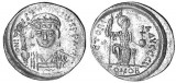 MAURICE TIBERIUS, (A.D.582-602), gold solidus, Constantinople mint, (4.41 grams), Officina **Q, obv. crowned, draped and cuirassed bust of Maurice Tiberius facing, wearing plumed helmet, holding ...