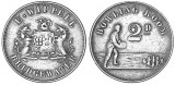 RENISON'S GRAND PLEASURE BATH BRISTOL, 1764 for twopence in brass (22mm) (D&W.52/65). Very fine and very rare.
