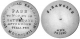 LONDON INTERNATIONAL EXHIBITION 1862, pass to works in ivory (36mm) reverse incribed 'J.HAWORTH/ AND/ FRIEND' (D&W 70/186). Very fine and extremely rare.