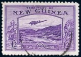 NEW GUINEA, 1939 Bulolo Goldfields two pounds bright violet, (SG 204); five pounds emerald green, (SG 205). Used. last with thin. (2)