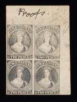 NEW ZEALAND, 2d Chalon Head block of 4, proofs on card, very scarce. Mint. (4)