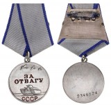 RUSSIA, (USSR), Medal for Bravery, type with 5-sided ribbon suspension; Medal for Combat Service, reverse with stamped number 3094424. Contact marks, otherwise very fine. (2)