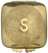 LADIES MAKEUP COMPACT, gold, .750 fine, initial S in relief on lid, gross weight 205g. Very fine and unused.
