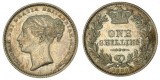 QUEEN VICTORIA, young head shilling, 1865, no WW, die no.10, (S.3905, ESC 1313). Brilliant, nearly uncirculated and very scarce.
