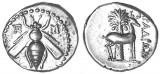 PHOENICIA, Arados, (2nd century B.C.), silver drachm, (4.23 grams), obv. bee from above, to left and right monograms, dotted border, rev. stag standing right, palm ...