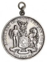 AUCKLAND CHILDREN'S FLOWER SHOW, Nov 22nd 1895, struck in silver (38mm), no maker, ring top suspension, reverse inscribed 'Presented/To/Lillie Phillips/By/The Countess/of Glasgow'. Toned, good very ...