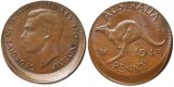 GEORGE VI, penny, 1945Y., 1950Y., struck twenty percent off centre. Lacquered, otherwise extremely fine. (2)