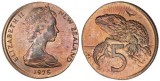 NEW ZEALAND, Elizabeth II, five cents, 1975, struck on a one cent blank. Extremely fine and rare.