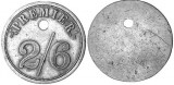BECHUANALAND PROTECTORATE (NOW BOTSWANA) B.B. Police (Bechuanaland Border Police) Canteen tokens, 1893 for 1s, (illustrated) 6d (illustrated) and aluminium blank stamped B.B. (T.B1; M.1,3,-). Fine-very ...