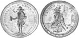 BLYTHING, Captain J. Rous's halfpenny, mounted yeoman left/castle in Garter 1794 (D&H 19) a proof struck in silver. Test cut in edge at 8 o'clock ...