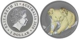 ELIZABETH II, Perth Mint, Australian Koala Silver Coin Series, specimen silver one ounce one dollar, 2010, gilded edition. In cases of issue with certificates, uncirculated. ...