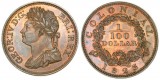 BRITISH COLONIAL, in general, George IV, pattern 1/100 dollar, 1823, edge plain, rim square or flat (Pr.17; Vice FT 10). Beautifully toned, much red on ...