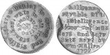BIRMINGHAM, Alston's halfpenny, 1796 poor house/beehive (D&H 63) coated in similor outside wavy circle on the reverse. Stratford halfpenny, Shakespeare/legend (D&H 320). Good extremely fine; ...