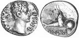 AUGUSTUS AS OCTAVIAN, (27 B.C. - A.D. 14), silver denarius, uncertain Italian mint (probably Brundisium, maybe Rome), issued 32-29 B.C. (3.36 grams), obv. Octavian head ...