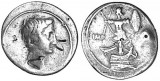 AUGUSTUS AS OCTAVIAN, (27 B.C. - A.D. 14), silver denarius, uncertain Italian mint (probably Brundisium, maybe Rome), issued 29-27 B.C. (3.52 grams), obv. Mars head ...