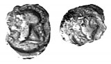 SAMARIA, Satrap issue, (375-345 B.C.), silver hemiobol, (0.385 grams), obv. female head (Arethusa?), facing, border of dots, rev. bearded male head to left, with crested ...