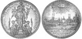GERMANY, Nurnberg City, gold six ducats, 1698, (20.9 grams), obv. view of walled city of Nurnberg, rev. Pax with two genii (cupids?) at feet each ...