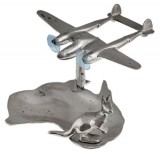 WWII, Lockheed Lightning ashtray, features a Lockheed aircraft on a curved arm supported above a map of Australia ashtray with a kangaroo at the right ...