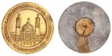 NEW ZEALAND INTERNATIONAL EXHIBITION, Christchurch, 1906-7, Home Industries Section, struck in gold (30mm), no maker (Stokes), ring top suspension with fitted pin-back suspension, reverse inscribed ...