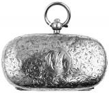 VINEGARETTE, silver with gilt interior, Birmingham, 1824, hand chased on outer shell with oval panel for initials. Nearly very fine.