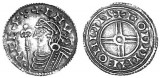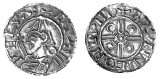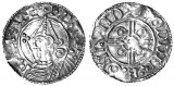 ANGLO SAXON, Cnut (1016-1035) penny, pointed helmet type, issued 1024-1030, BRVNNIC ON LVND, (Brunic of London), (S.1158, N.787, Br.3). Slightly bent, lightly toned, nearly extremely ...