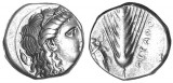 ITALY, Lucania, Metapontum, (c.400-350 B.C.), silver stater or nomos, (7.60 grams), by Aristoxenos, obv. head of female (Kore) to right, the hair falls into thick ...