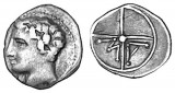 GAUL, Massalia (as a Colony founded by the Phokaians), (c.400-350 B.C.), silver obol, (0.692 grams), obv. youthful male head of Apollo left, rev. wheel with ...