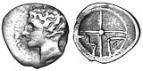 GAUL, Massalia (as a Colony founded by the Phokaians), (c.400-350 B.C.), silver obol, (0.478 grams), obv. youthful male head of Apollo left, rev. wheel with ...