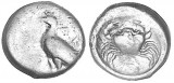 SICILY, Akragas, (472-420 B.C.), silver litra, (0.580 grams, obv. eagle with closed wings to left, AK RA, rev crab, (S.746, BMC 50); Gela, (480-470 B.C.), ...