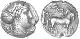ITALY, Calabria, Tarentum (Taras), (4th century B.C.), silver diobol, (1.212 grams), obv. Athena head to right, wearing crested helmet, rev. Herakles kneeling to right wrestling ...