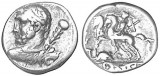 M.SERGIUS Silus, (116-115 B.C.), silver denarius, (3.878 grams), obv. Roma helmeted head right, EX SC before, ROMA * behind, rev. horseman galloping left, with sword ...