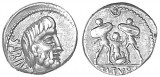 M.SERGIUS Silus, (116-115 B.C.), silver denarius, (3.790 grams), obv. Roma helmeted head right, EX SC before, ROMA * behind, rev. horseman galloping left, with sword ...