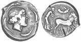 SICILY, Syracuse, (c.474-450 B.C.), silver tetradrachm, (16.82 grams), obv. slow quadriga driven to right by male charioteer, Nike flying right crowning horses, pistrix (sea-serpent) in ...